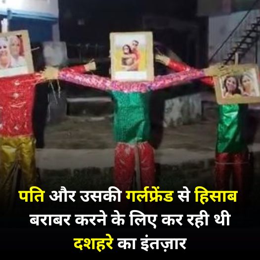 दशहरा के दिन जहां सभी तरफ रावण को गया वहीं उत्तर प्रदेश के हमीरपुर में एक अलग ही किस्सा हुआ यहां पर रहने वाली प्रियंका जो बेटी बढ़ाओ बेटी पढ़ाव अभियान को चलाती है उसने अपने घर के आंगन में पुतला रावण का नहीं बल्कि अपने ससुराल वालों का प्रियंका ने अपनी सास अपने पति और अपनी ननद की तस्वीरें लगाकर एक पुतला बनाया और दशेरा के दिन उन्हीं का पुतला फूक दिया।