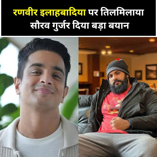 इतना ही नहीं लोग अपने-अपने रिएक्शंस दे रहे हैं और समय रहना रणवीर अलाहाबाद और समय रहना के शो इंडियाज गट लेटन पर लगाता खतरे के बादल भी मंडरा रहे हैं वहीं इस बीच अब एक्टर सौरव गुर्जर ने रणवीर के बयान पर रिएक्ट किया है दरअसल सौरव गुर्जर ने अपने सोशल मीडिया प्लेटफॉर्म एक्स अकाउंट पर एक वीडियो शेयर किया है उस वीडियो में सौरव गुर्जर ने रणवीर के विवाद पर बात करते हुए कहा है रणवीर अलाबाद या बेहद पॉपुलर है पॉडकास्ट करता है लोगों को बुलाता है मैंने भी इनके पॉडकास्ट देखे हैं.