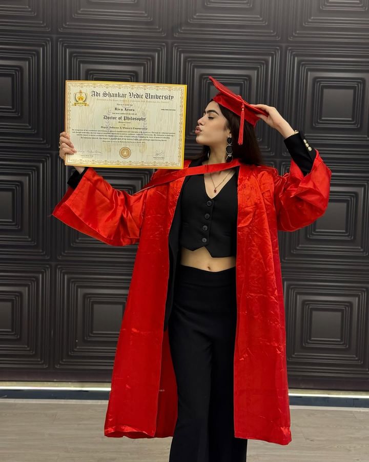 लेकिन आज उनकी एजुकेशन से रिलेटेड एक नया अपडेट सामने आया है जी हां आपकी जानकारी के लिए बता दें कि अब रीवा अरोड़ा डॉक्टरेट डिग्री होल्डर हो गई हैं अब आखिर यह डिग्री उन्हें किस सब्जेक्ट में मिली है कहां से मिली है चलिए आज की इस वीडियो में जानते हैं नमस्कार मैं हूं आप सभी के साथ कृतिका और आप देख रहे हैं बोल्स गाय एक्ट्रेस और इन्फ्लुएंस रीवा रोड़ा फिल्म उरी और छुत्री वाला के लिए काफी ज्यादा फेमस हैं.