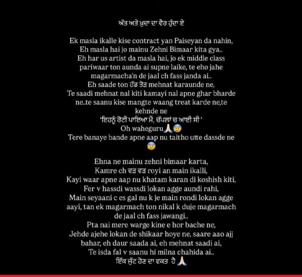 हमारी कड़ी मेहनत का पैसा सिर्फ और सिर्फ हमें ही मिलना चाहिए हमें एकजुट होकर रहने की जरूरत है आपको बता दें कि पिंकी जिस प्रोड्यूसर पर सुनंदा ने गंभीर आरोप लगाए हैं पंजाब पुलिस ने उसके खिलाफ एक्शन लिया है और उसे गिरफ्तार भी कर लिया गया है और उसके बाद ही सुनंदा ने यह पोस्ट की.